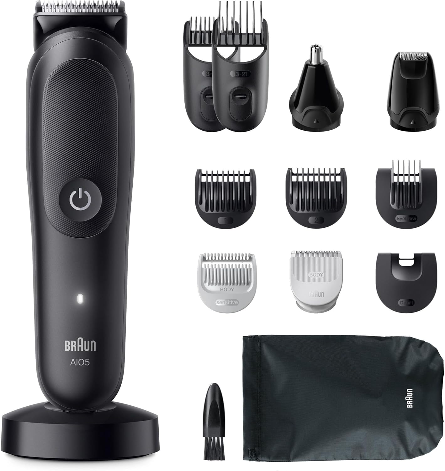 Langlebig: 100% wasserdicht mit AquaGrip-Griff für absolute Kontrolle, selbst unter der Dusche. Der langlebige Li-Ion-Akku bietet eine kabellose Laufzeit von bis zu 120 Minuten. Absolute Kontrolle: Der AIO5 bietet 14 Längeneinstellungen (3-21 mm) für herausragende Stylingergebnisse. Sanft zu empfindlicher Haut: Die SkinGuard-Technology bietet maximale Sicherheit und Komfort selbst in empfindlichen Körperbereichen. Hohe Vielseitigkeit: Die ultrascharfe Klinge sorgt für Präzision, Effizienz und Komfort bei der Pflege des gesamten Körpers. Grenzenloses Styling von Kopf bis Fuß: Brauns 13-in-1 Set für die All-in-One Pflege beinhaltet sorgfältig ausgewählte Tools für das Barttrimmen, das Haareschneiden und die Körperpflege.