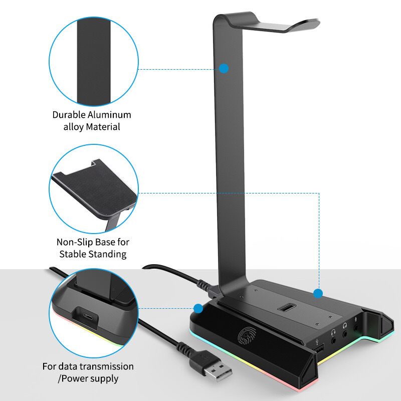 Kopfhörerständer ist Plug-and-Play, kein Treiber erforderlich. ①Der Headset-Ständer ist mit verschiedenen Betriebssystemen kompatibel und ermöglicht den Zugriff auf einen Computer oder einen anderen USB-Anschluss. ②Zugriff auf ein normales USB-Ladegerät, dann an die Steckerplatine anschließen