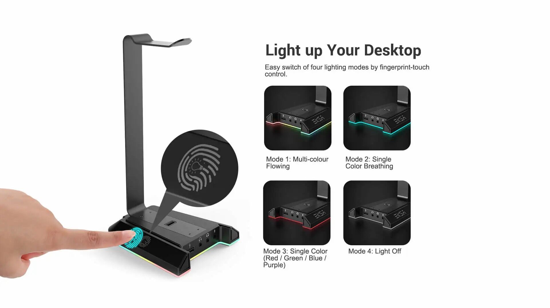 Der Headset-Ständer für Gaming-Zubehör verfügt über empfindliche und praktische Touch-Tasten. Es verfügt über eine Speicherfunktion, sodass es sich nach dem Ausschalten an das Farbmuster erinnern kann und beim erneuten Einschalten nicht zurückgesetzt werden muss