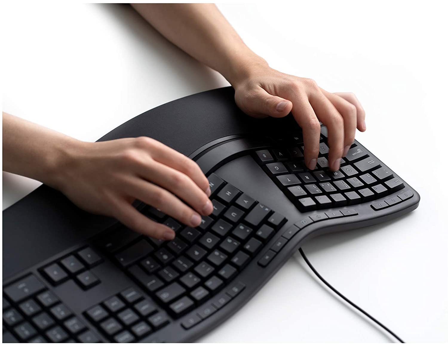 - Ergonomisch geteiltes Tastenfeld für eine natürliche Handhaltung