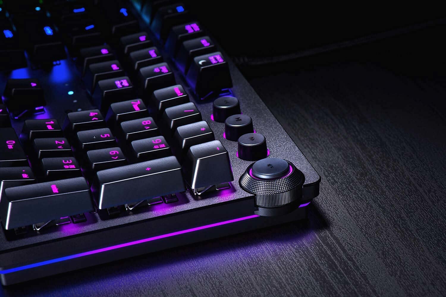 - Mit eigener Mediensteuerung: Die Razer Huntsman Elite ermöglicht die direkte Anpassung von der Helligkeit bis hin zur Lautstärke per programmierbarem multifunktionalen digitalen Drehregler mit gleich drei taktilen Medientasten